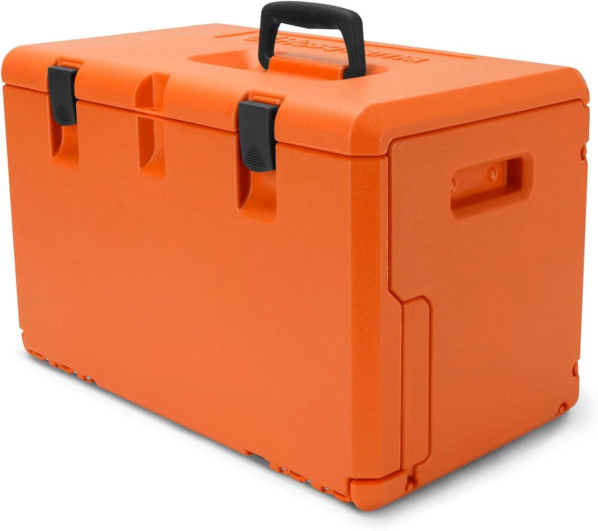 Store and transport your Husqvarna chainsaw in a Husqvarna Powerbox Chainsaw Carrying Case. This stackable carrying case is designed to hold Husqvarna chainsaws from model 136 up to and including the Husqvarna 460 Rancher, Husqvarna 455 Rancher, 372XP and 576XP. Made of High-Density Polyethylene (HDPE) for durable storage, this portable chainsaw holder features double-wall construction to keep your gear protected. This Husqvarna chainsaw case has an internal tool chest design to securely hold filing equipment, a filing vise, scrench, spark plug, 2-stroke oil, bar and chain oil and an operator's manual. This Husqvarna chainsaw case contains a “husky leash” system with replaceable handles and latches to stabilize smaller saws for a secure fit and to protect your cutting equipment. A heavy-duty piano hinge ensures that this Hi-Vis carrying case has the rugged durability to transport Husqvarna models reliably. This single, fully assembled case comes with an 18- to 20-inch scabbard. In addition to the Powerbox Carrying Case, Husqvarna offers a variety of safety chainsaw accessories like protective chainsaw helmets, work gloves and hearing protection. Comes unassembled.