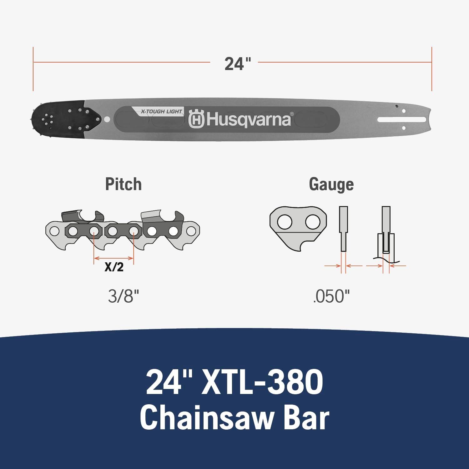 Precision Chainsaw Accessories: 24 inch chainsaw bar features a 3/8″ pitch, .050″ gauge and 84 drive links